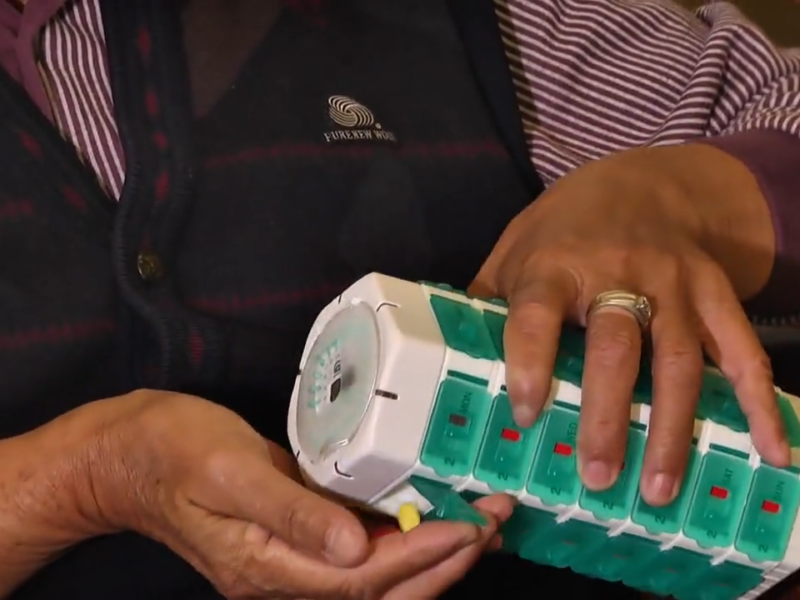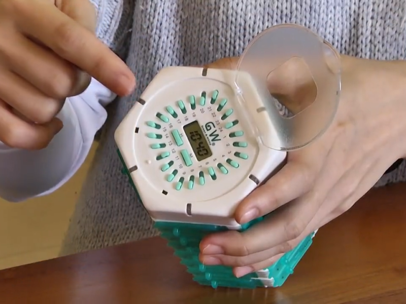 - Safety locks to keep children out and indicate if pills have been taken.